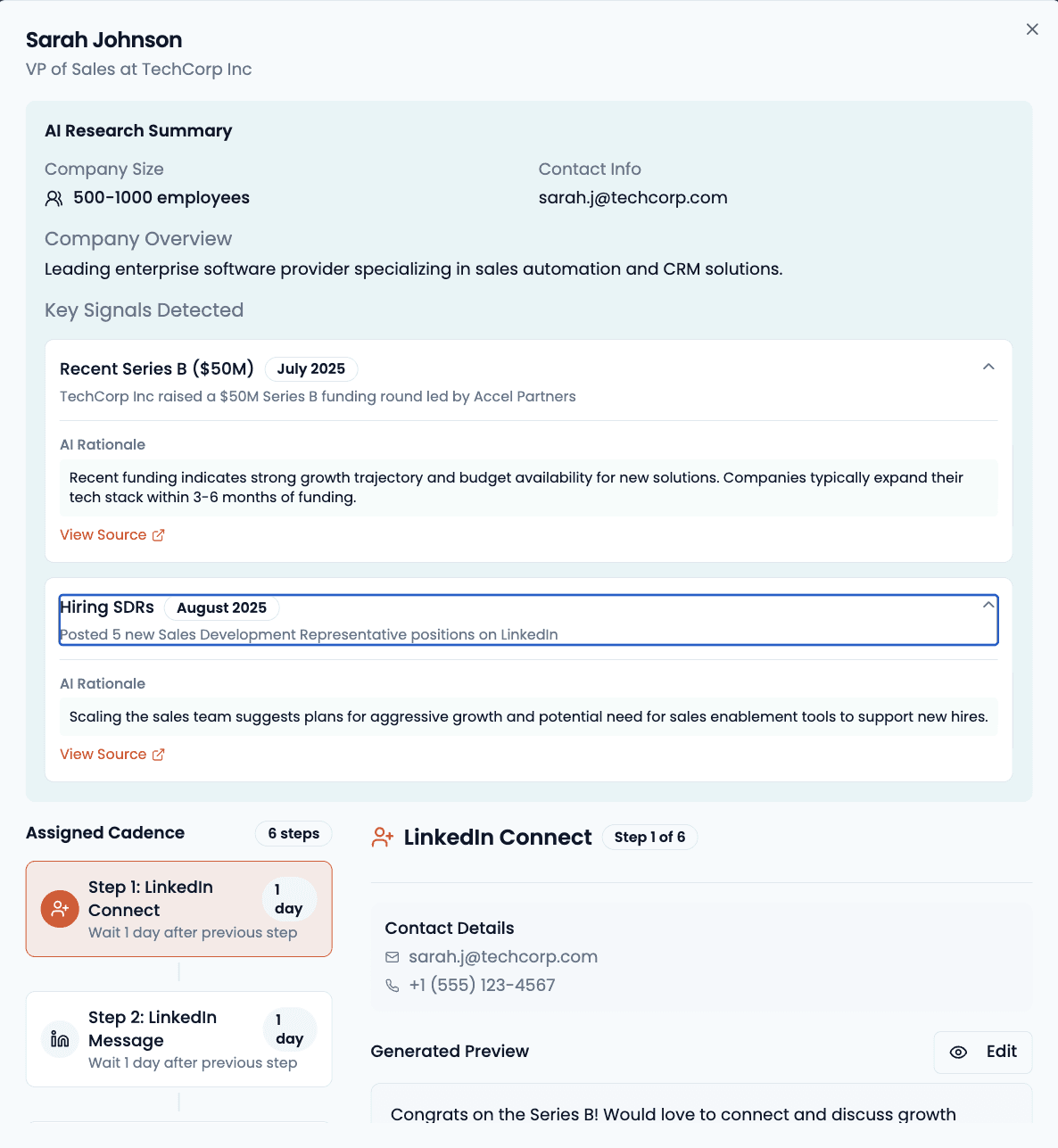 Start every day with a list complete with signals, AI Research and validated contact data.